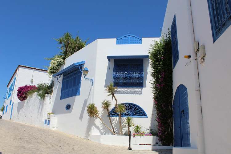 Mészfehér falak és kupolák, amelyekkel remek kontrasztot ad a világoskékre festett ajtók, tetők és ablakok látványa, mindehhez pedig a mélyzöld ciprusok, a pálma- és a narancsfák sokasága, a felhőtlen ég és a mélykék színben pompázó tenger háttere teszi teljessé az élményt… a napfényes Sidi Bou Said festői falucskájában a kék összes árnyalatára találhatunk példát. Ez a bohém, virágos, kék-fehér település Tunézia egyik legfontosabb látványossága, amely nem is csoda, hiszen az összkép pontosan úgy ejti rabul az utazókat, akárcsak a hozzá hasonlóan a kék és fehér színekből álló épületek látványa a görög Szantorinin.