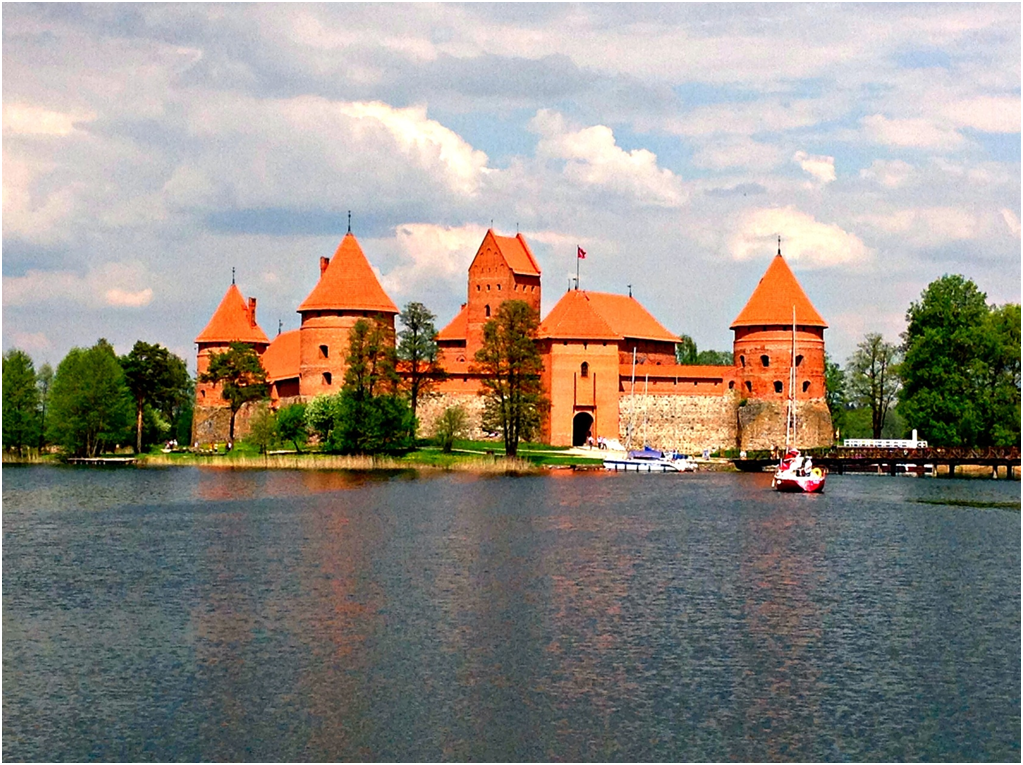 Vilnius közelében, egy gyönyörű piros-téglás vár tűnik a szemünk elé. A tavakkal övezett keskeny földnyelven épült vár eredetileg a Német Lovagrend elleni védekezést szolgálta.