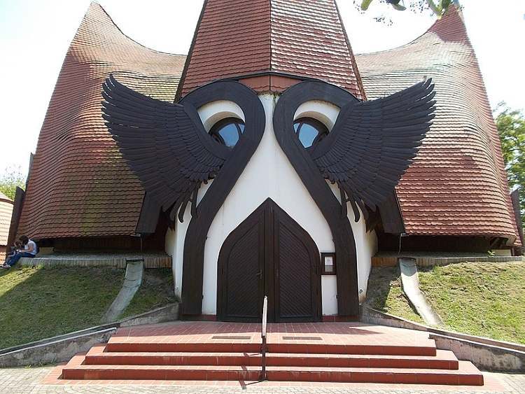 A kissé mókás külsejű siófoki evangélikus templom kívülről leginkább egy hosszú szempillás törpefejre emlékeztet bennünket, viszont nagyon jól illeszkedik a szamárhátíves kapuhoz, amin keresztül bejuthatunk a templomba. Belül azonban igazán lélegzetelállító látványban lehet részünk. A „Krisztus hajójának” is nevezett épület négy része a négy égtáj felé néz a tető csúcsán pedig egy életfa ábrázolás található. A rengeteg fagerendával kirakott mennyezet tökéletes harmóniát alkot a fehérre meszelt falakkal, az oltár feletti apszisban pedig egy fából faragott Krisztus-szobor vonzza magára a figyelmet. Ha jobban megfigyeljük a szentély eme részét, észrevehetjük, hogy az oltár egy hatalmas országcímert formáz, a címerrészben pedig egy könyvre lehetünk figyelmesek, mely a Bibliát szimbolizálja.